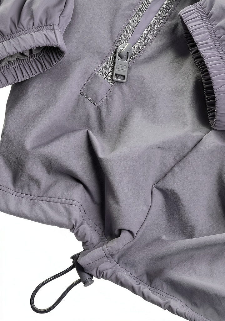 - Cappuccio fisso con cordoncino regolabile per protezione dal vento